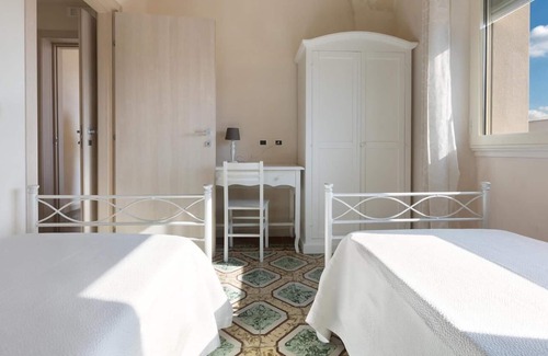 The holiday home for rent in Salento is equipped withair coditioning, mosquito nets, freewifi connection,alarm system anddishwasher.It shares with the other apartments a laundry area withwashing machine, iron and ironing board. There isn`t a parking area in the property but it is possible to park the car near the building.