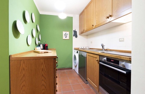 The apartment comes equipped with a small, open kitchen featuring an oven, dishwasher, four induction hot plates, a toaster, kettle, electric coffee machine, and complimentary Nespresso capsules for the coffee machine. Additionally, you'll find a washing machine, hair dryer, and free Wi-Fi internet access. The apartment has two bathrooms, one with a bath/bidet/WC and the other with a shower/bidet/WC. Heating is available throughout the unit.