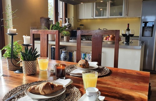 While you're here, you can enjoy all the comforts of home and more, including a jetted bathtub and WiFi, as well as heating and a dryer. Other amenities include towels, an ironing board, soap, and toilet paper.