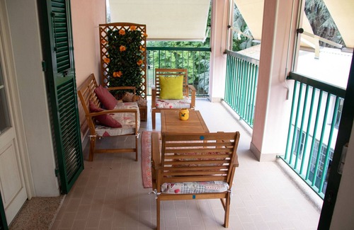 The apartment is located on the second floor of a villa in the hinterland of Chiavari and consists of: entrance hall in the large living room with sofa bed for two people, a large fully equipped kitchen, a master bedroom with king size bed, wardrobe four seasons , console and armchair, a double room with built-in wardrobe, a console and two chairs, two bathrooms, one with shower, laundry area, large terrace, a second terrace where you can spread the laundry. Each room is equipped with TV, air conditioning and internet; electricity, water, gas and internet are free. Outside the covered parking and the garden are completely fenced, there is a barbecue, a large ping-pong table, a gazebo and a porch.